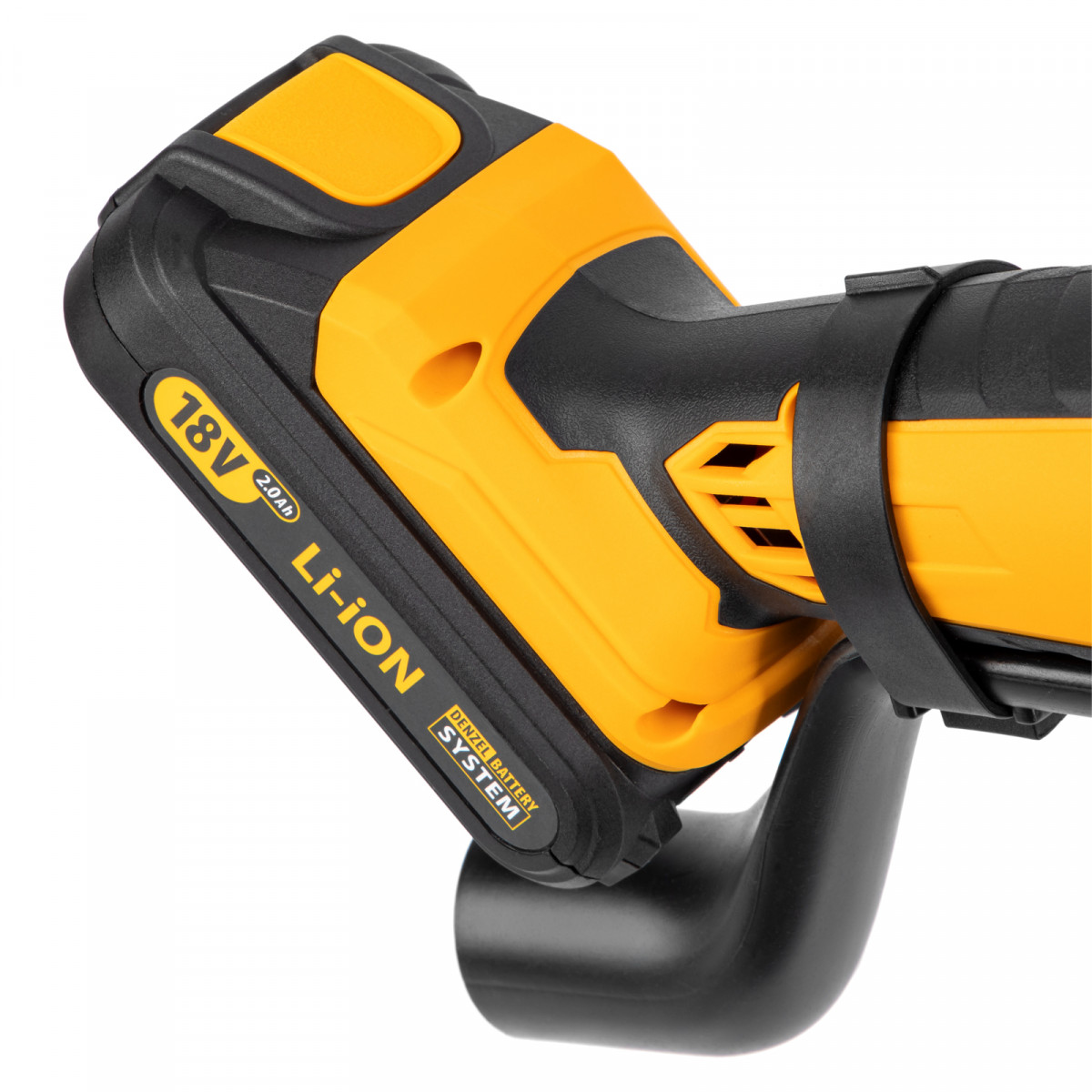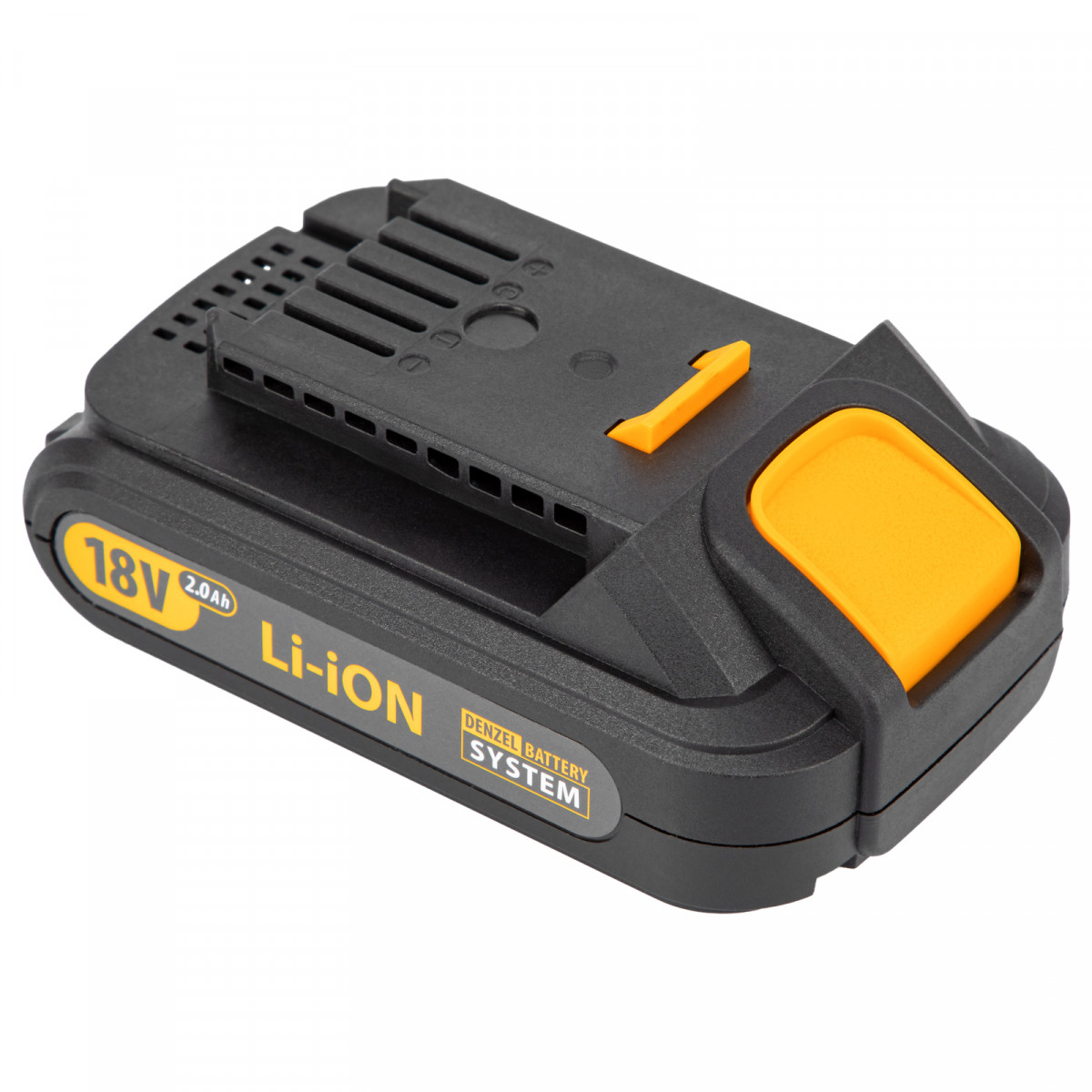 • Универсальность — аккумуляторная батарея Li-ion емкостью 2 Ач совместима с любым инструментом из модельного ряда единой платформы Denzel Battery System 18V.