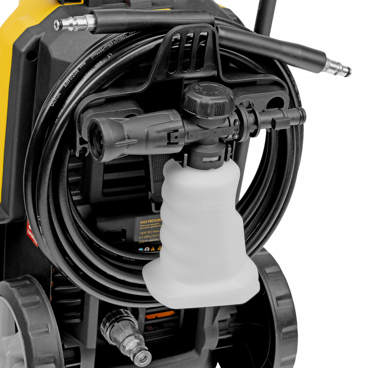 Мойка высокого давления - 1 штКронштейн для шланга - 1 штШланг высокого давления - 1 штПистолет - 1 штУдлинитель пистолета с регулируемым соплом - 1 штПеногенератор с бачком для моющего средства - 1 штВходной штуцер с фильтром - 1 штБыстросъемный коннектор шланга - 1 шткронштейн-держатель пистолета - 1 штКронштей сетевого кабеля - 1 штИгла для прочистки сопла - 1 штКомплект крепежа - 1 штИнструкция с гарантийным талоном - 1 шт