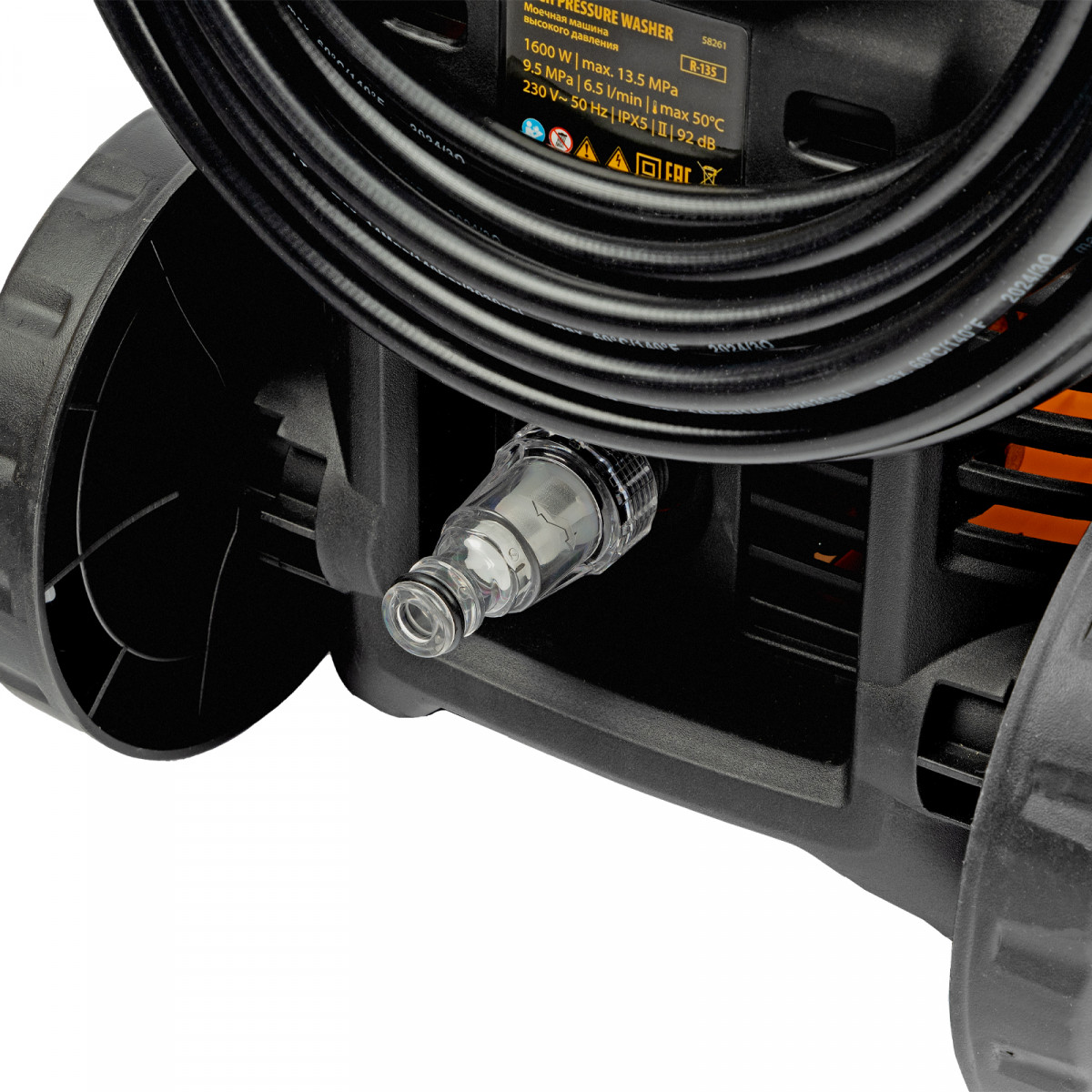 - Простая подготовка к работе — быстросъемный адаптер облегчает подключение шланга подачи воды.