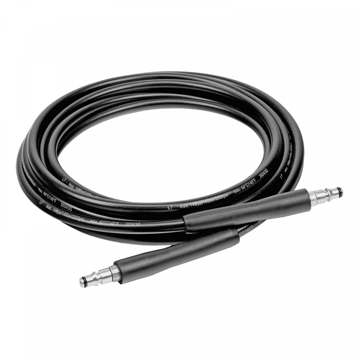 длина кабеля и шланга высокого давления составляет 5 м, что позволяет свободно передвигаться по участку.