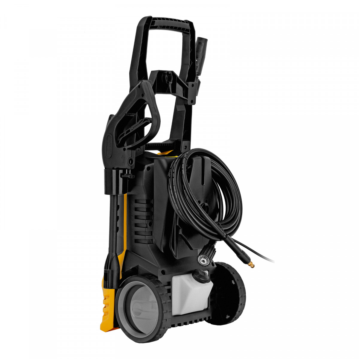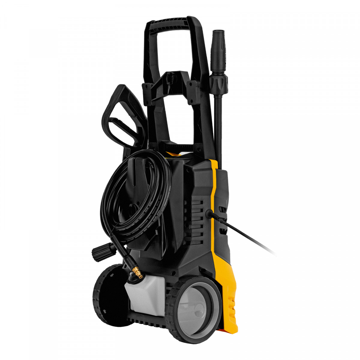 - Удобная транспортировка — мойка оснащена колесами, а на корпусе предусмотрена ручка.