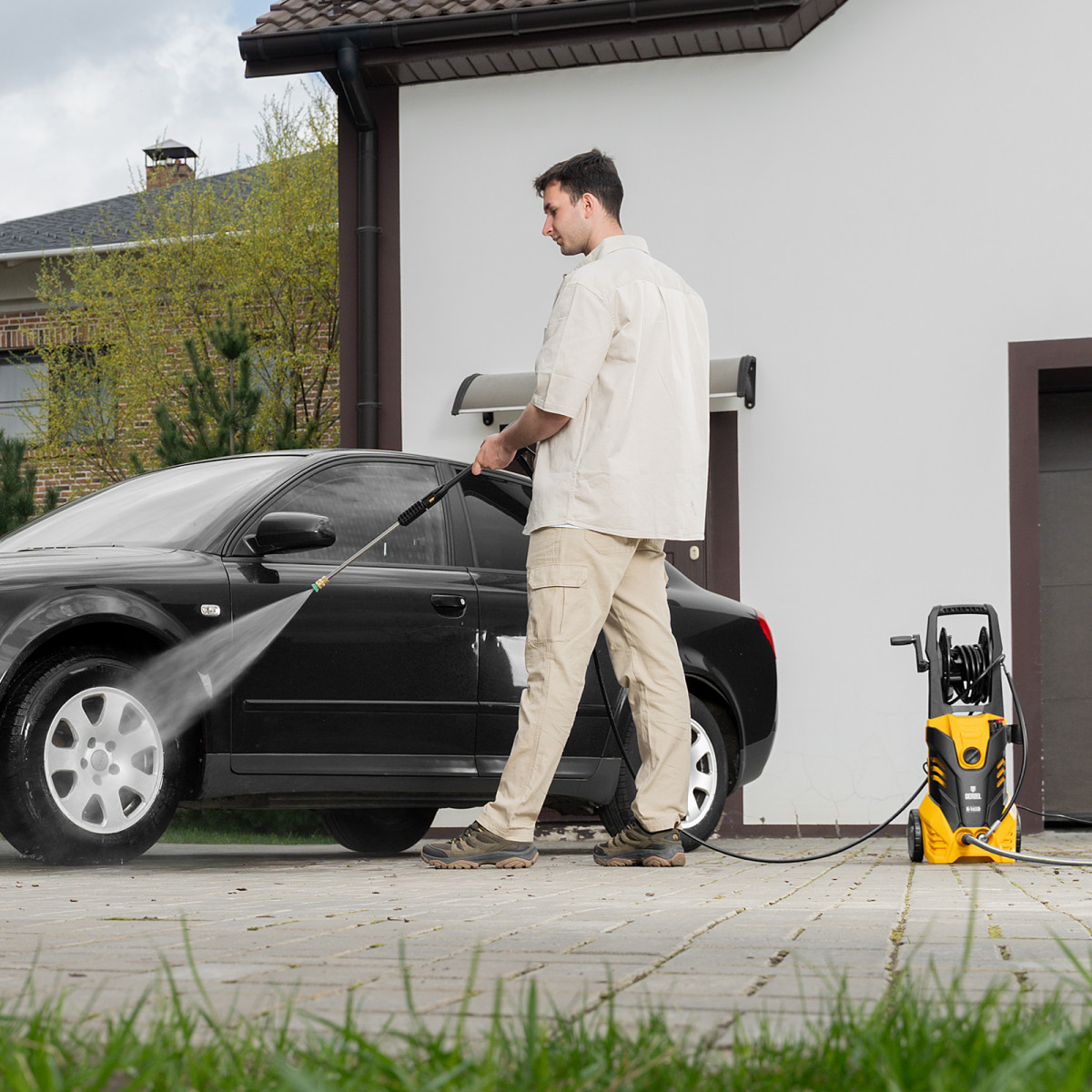 • Мобильность — длина шланга и сетевого кабеля составляет 5 м, что позволяет свободно перемещаться по рабочей зоне.