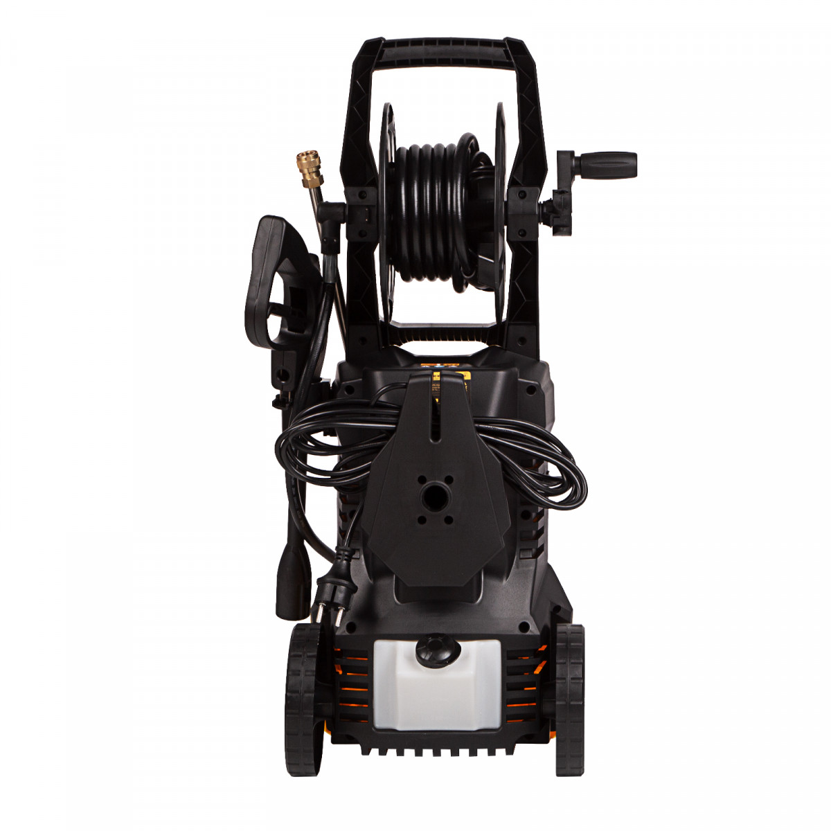• Удобная транспортировка — мойка оснащена колесами, а на корпусе предусмотрена ручка.