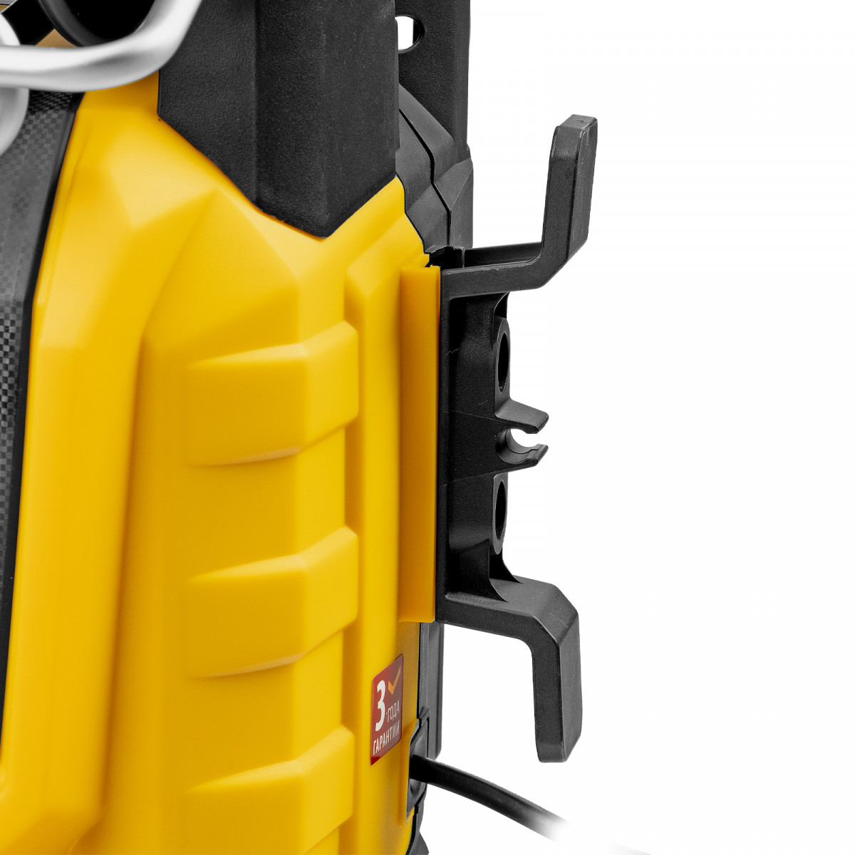 - Максимально комфортное передвижение — длина шнура питания составляет 5 м, длина шланга высокого давления увеличена до 8 м.
