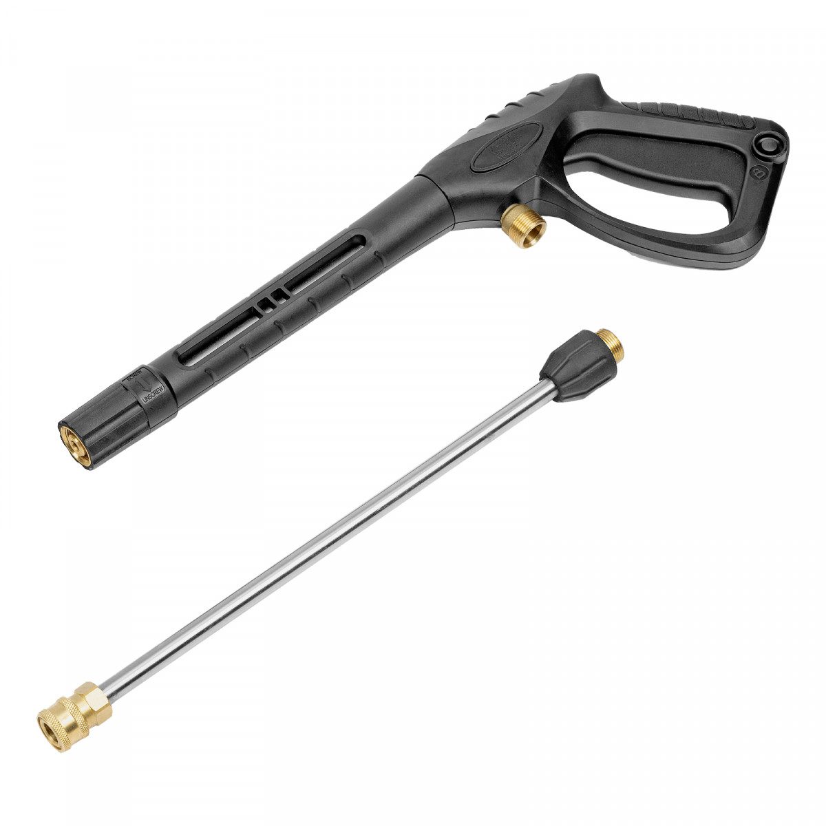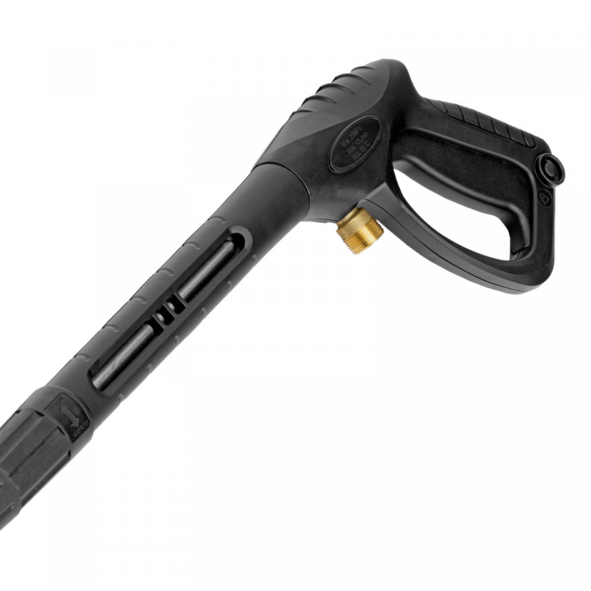 - Простая подготовка к работе — удлинитель пистолета с быстросъемным креплением позволяет легко изменить угол распыла, установив нужную форсунку, или перейти к использованию пеногенератора.
