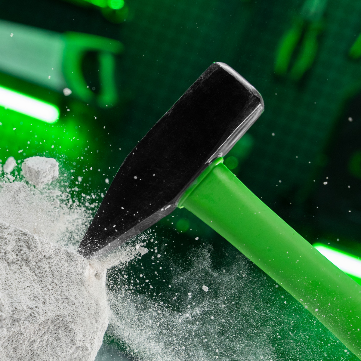 • Комфортная работа — легкая фибергласовая рукоятка поглощает колебания от ударов, ее прорезиненная поверхность не скользит в руке.