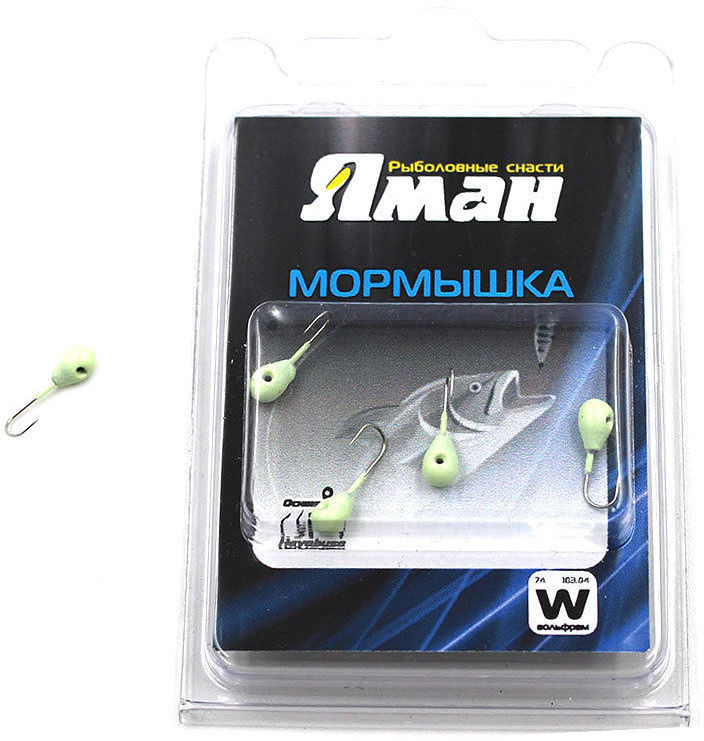 Мормышка вольф ЯМАН Капля с ушк. + кр. камень, р.4, вес 1 г, цв.фосф.(уп.5 шт.)