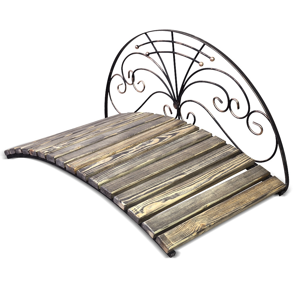 Декоративный кованый мостик 862-03R может служить переправой, через небольшой ручеёк на учаске. Так же данная модель будет отично сочитаться с «сухим ручейком». Прочная и надёжная конструкция без турда выдержит вес нескольких взрослых людей. Все деревянные элементы обработанны специальными влагостойкими составами.