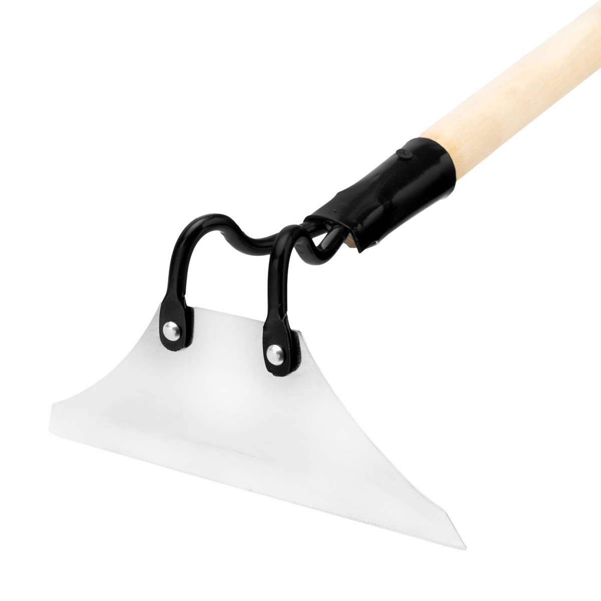 - Эффективная работа — режущая кромка остро заточена, поэтому мотыга легко срезает сорняки и рыхлит даже плотную почву.