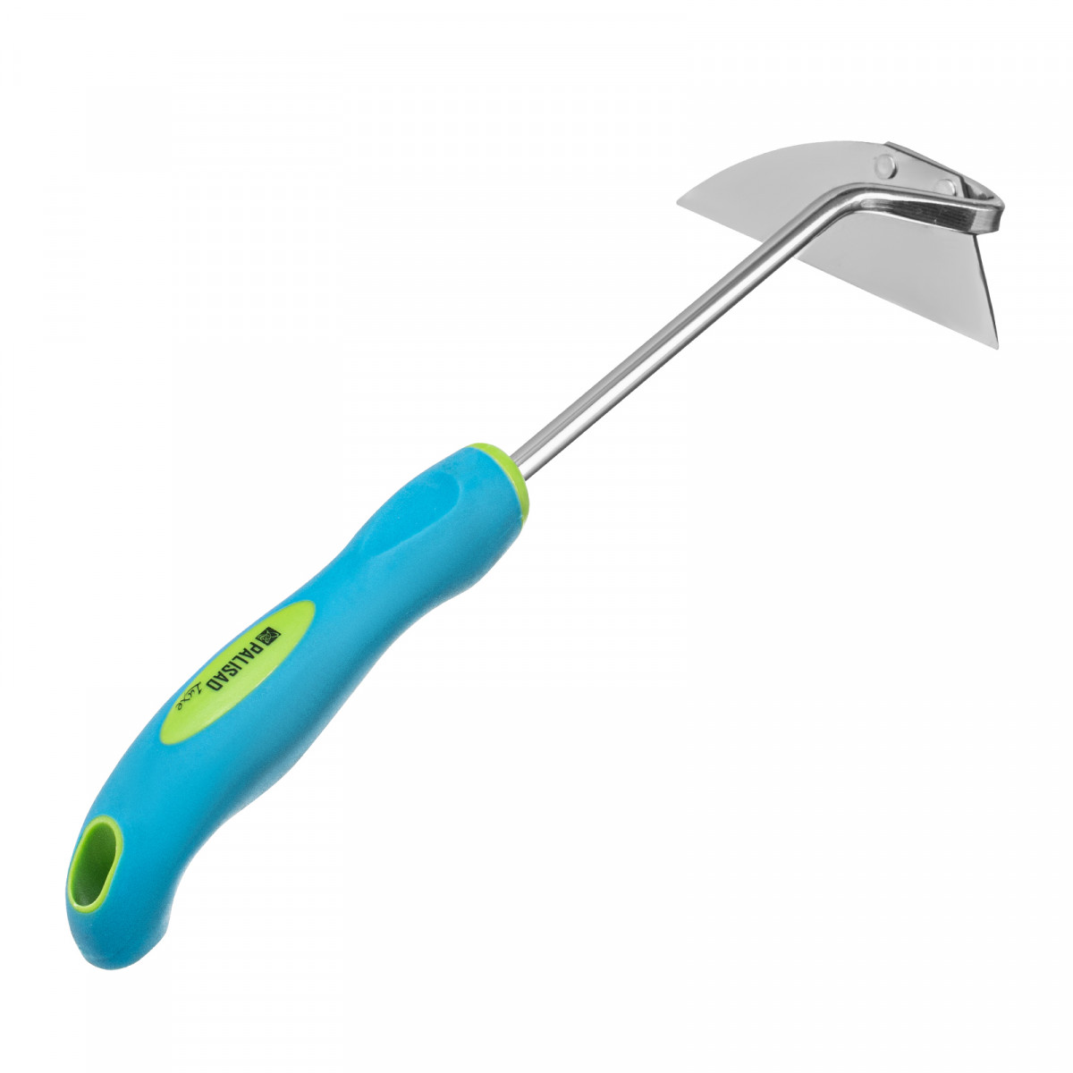 Мотыжка Palisad PREMIUM PLUS 62057, 115 х 320 мм, из нержавеющей стали, с двухкомпонентной рукояткой, будет полезна дачникам для поддержания порядка на участке. За счет острой рабочей кромки ею удобно удалять сорняки и нарезать лунки под посадку семян. Мотыжкой небольшого размера 115 х 320 мм можно работать в условиях ограниченного пространства.