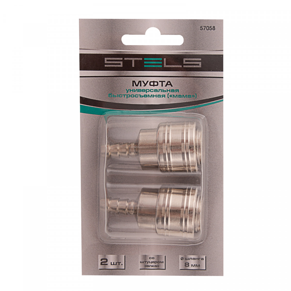 Муфта универсальная быстросъемная ("мама") 3/8, со штуцером "елка" под шланг 8 мм, 2 шт, Stels