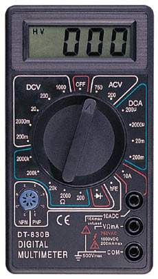 Мультиметр ТЕК DT 830B 61/10/218 выполняет множество функций, например, измеряет напряжение, ток, сопротивление. Измерения осуществляются посредством аналого-цифровых преобразователей двойного интегрирования с автоматической коррекцией нуля, определением полярности и индикацией перегрузки. Модель широко применяется в полевых условиях, лабораториях, мастерских и домашних хозяйствах.