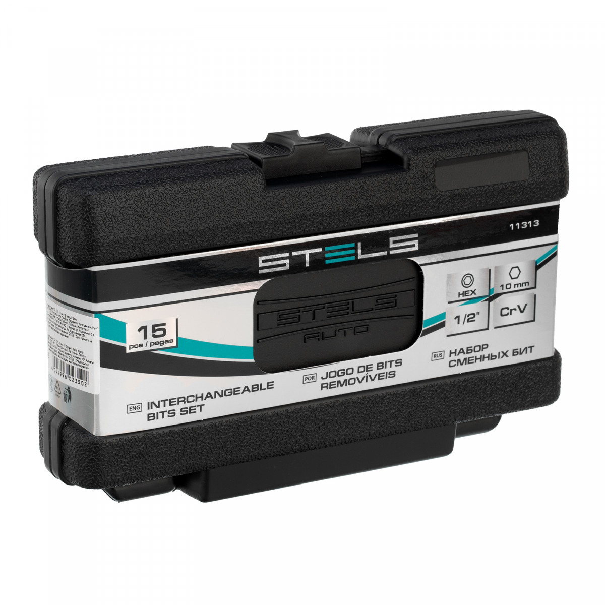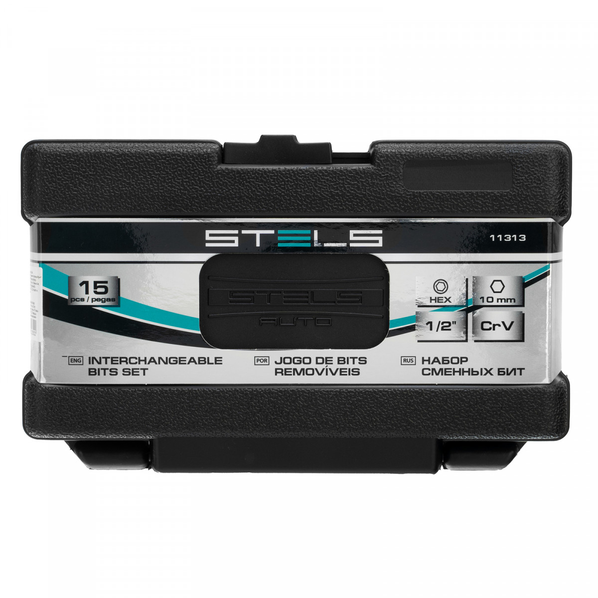 Набор бит HEX, шестигранный хвостовик 1/2'', CrV, 10 мм, 15 предметов Stels
