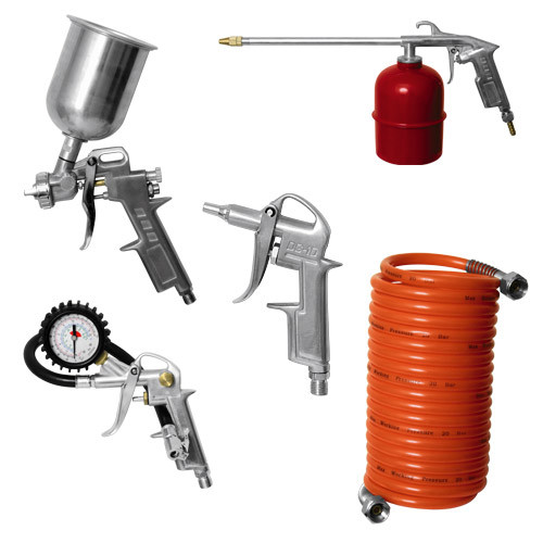 Набор пневмоинструмента MATRIX 57304 содержит 5 предметов. Он используется при покрасочных, промывочных и продувочных операциях, а также при подкачивании шин. Набор пригодится для работы в гараже, домашней мастерской, автосервисе, на мебельном производстве и при мелких посадочных работах. Подходит для всех видов пневматических компрессоров.