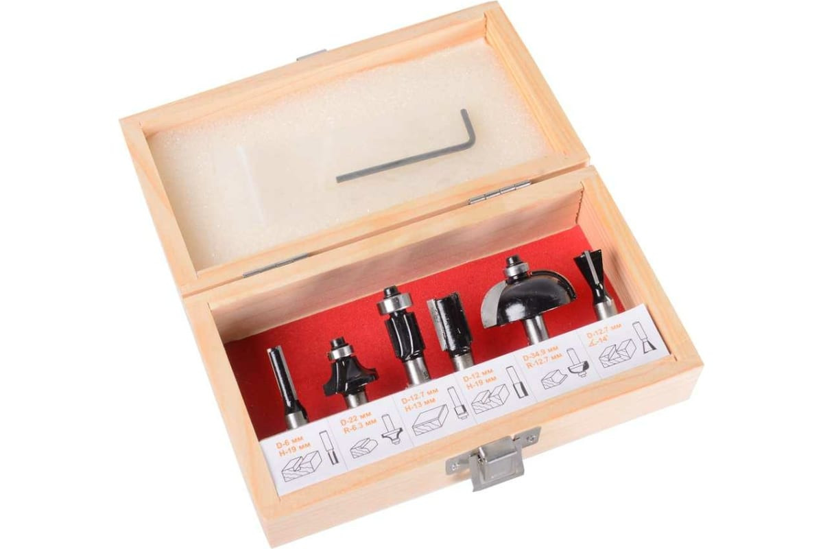 Набор фрез по дереву 6шт.(хвостовик 8мм), кейс ВИХРЬ