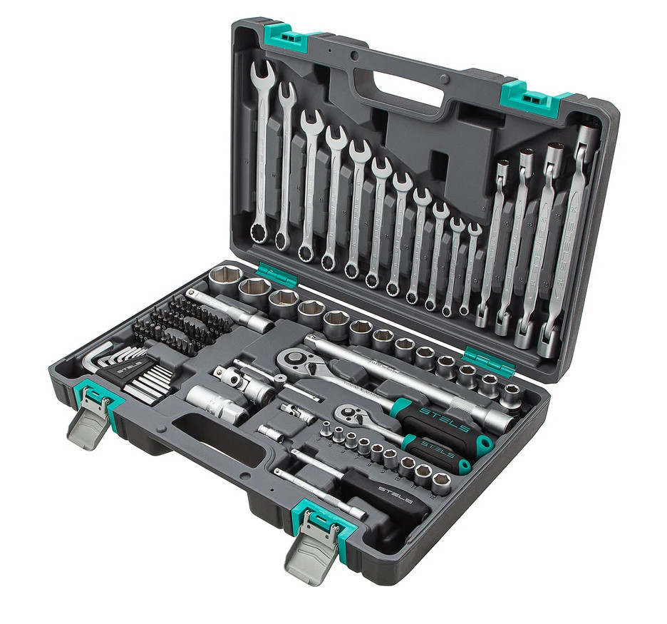 Наборы инструмента торговой марки STELS разработаны специально для автолюбителей и центров технического обслуживания. Каждый этап производства контролируется в соответствии с международными стандартами. Головки и комбинированные ключи изготовлены из хромованадиевой стали, придающей инструменту исключительную твердость в сочетании с легкостью. Биты, биты-вставки и отвёртки производятся из стали S2, улучшающей свойства инструмента. Все наборы упакованы в кейс, изготовленный из жесткого противоударного пластика, с металлическими застёжками. Наборы инструмента STELS пригодятся вам не только в автомобиле. С их помощью можно проводить бытовой ремонт дома и на даче, ремонт бытовых конструкций и садовой техники.
