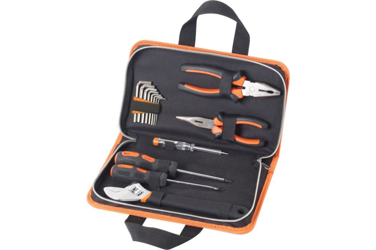 Набор домашнего мастера Кратон HMS-02/14 2 12 14 002 поставляет в компактном пенале с ручками для переноски. Набор подойдет для выполнения различных бытовых задач. Комплект подойдет для монтажа и демонтажа крепежа, удержания мелких деталей и т.п. Рукоятки изготовлены из двухкомпонентного материала. Рабочие части инструментов выполнены из высококачественной стали.Комплектность (14 предметов):