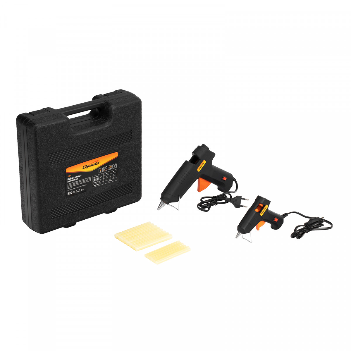 Набор клеевых пистолетов в кейсе, 7/11 мм, 20/100 Вт, 3/8 г/мин, выключатель Sparta
