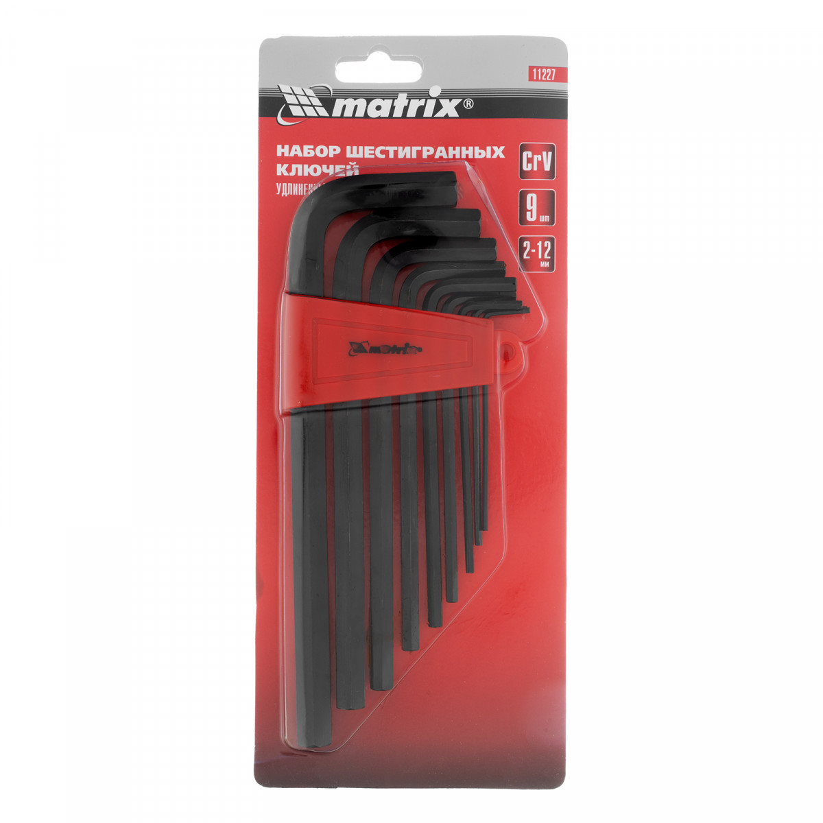 Набор ключей имбусовых HEX, 2.0-12 мм, CrV, 9 шт, удлиненные Matrix