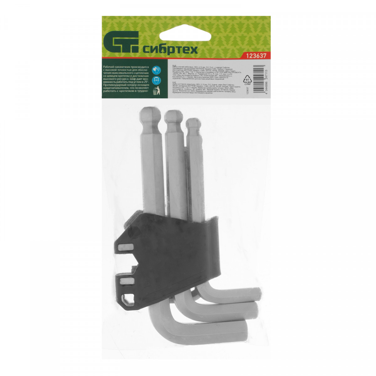 Набор ключей имбусовых, HEX, 2-12 мм, CrV, 9 шт., с шаром Сибртех