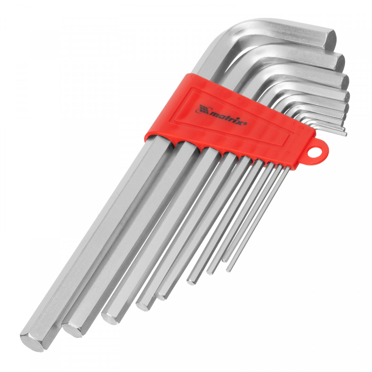 Набор ключей имбусовых HEX, 2-12 мм, CrV, 9 шт, удлиненныее с сатинированным покрытием Matrix