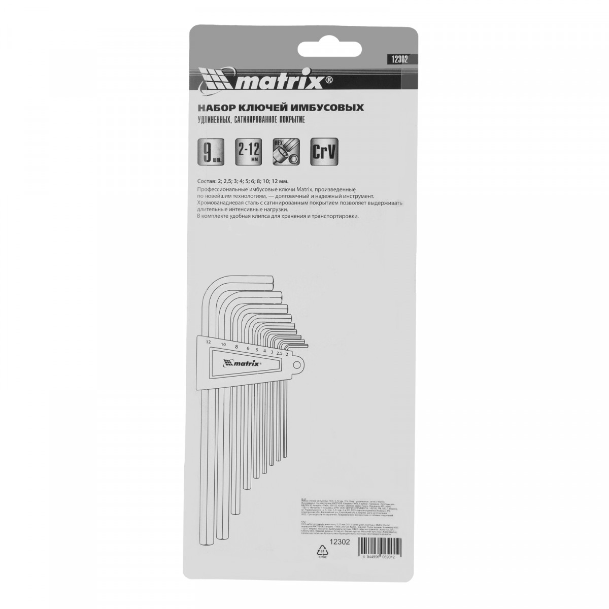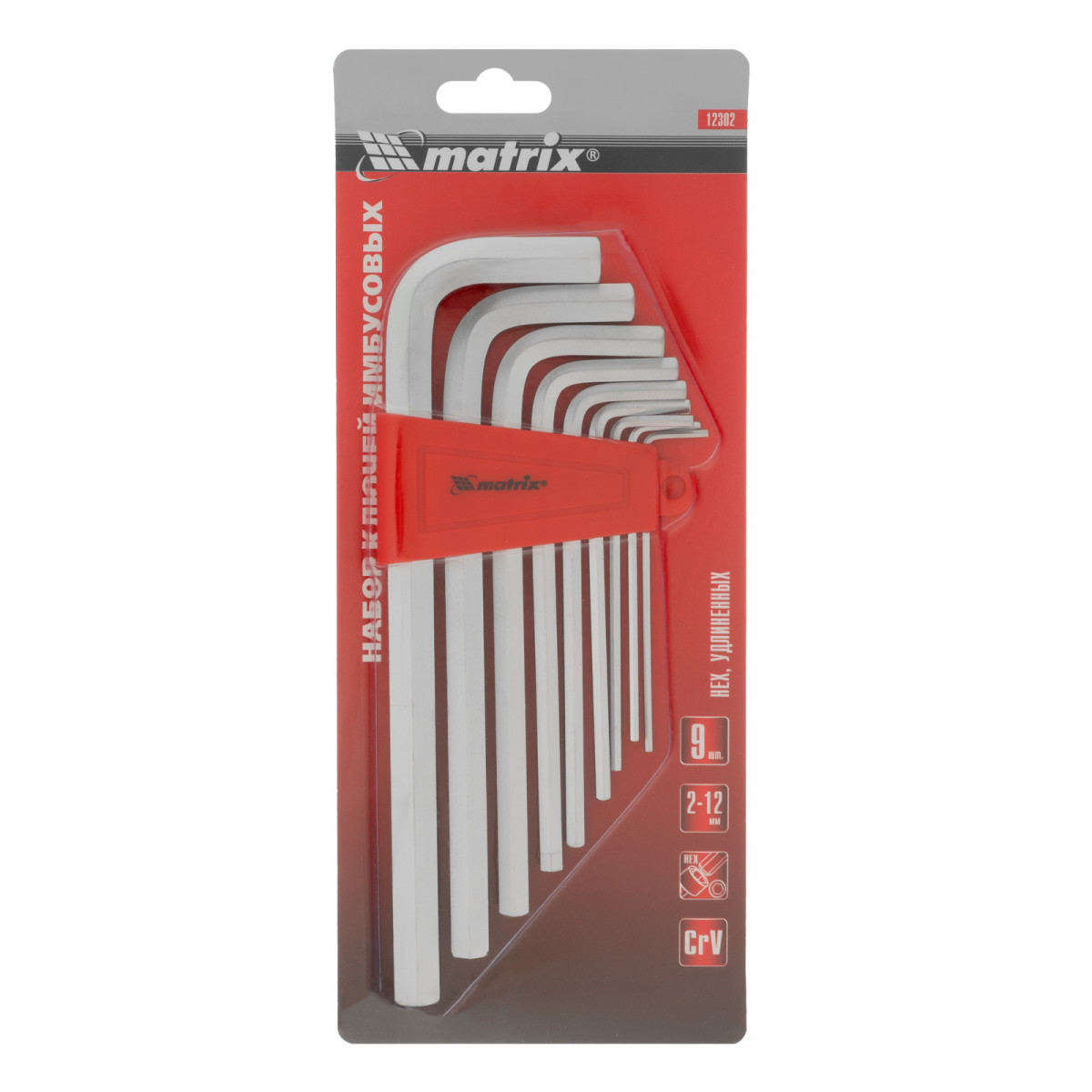 Набор удлиненных имбусовых ключей HEX Matrix 12302, 2-12 мм, сатинированный, 9 шт. из стали CrV, пригодится как начинающему мастеру, так и профессионалу. Ключи применяются при работе с крепежом, имеющим внутренний шестигранник. С их помощью можно собрать мебель или решить мелкие бытовые задачи. Удлиненные ключи удобны для работы в труднодоступных местах.