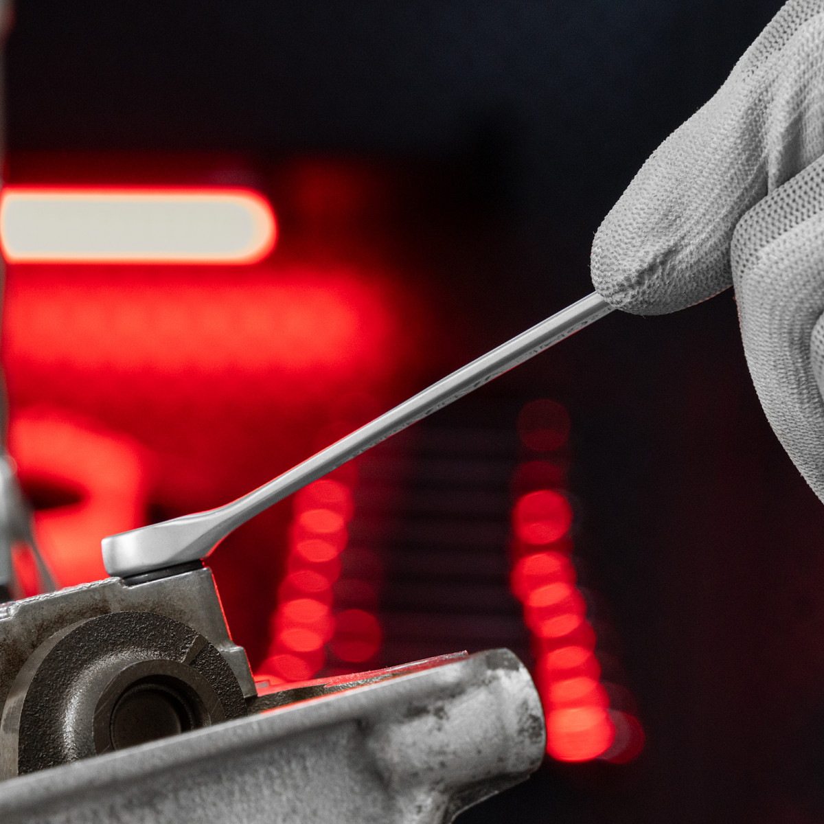 • Аккуратная работа — накидные части с 12-гранным профилем охватывают всю поверхность крепежа, уменьшая риск деформации его граней.