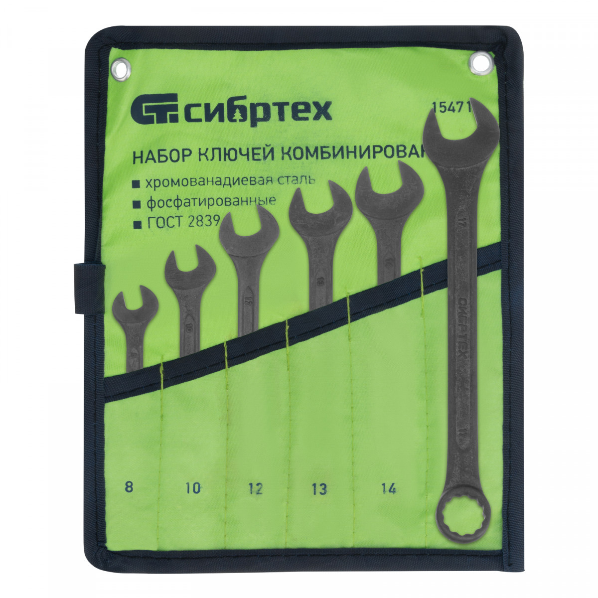 Набор ключей комбинированных, 8 - 17 мм, 6 шт., CrV, фосфатированные Сибртех