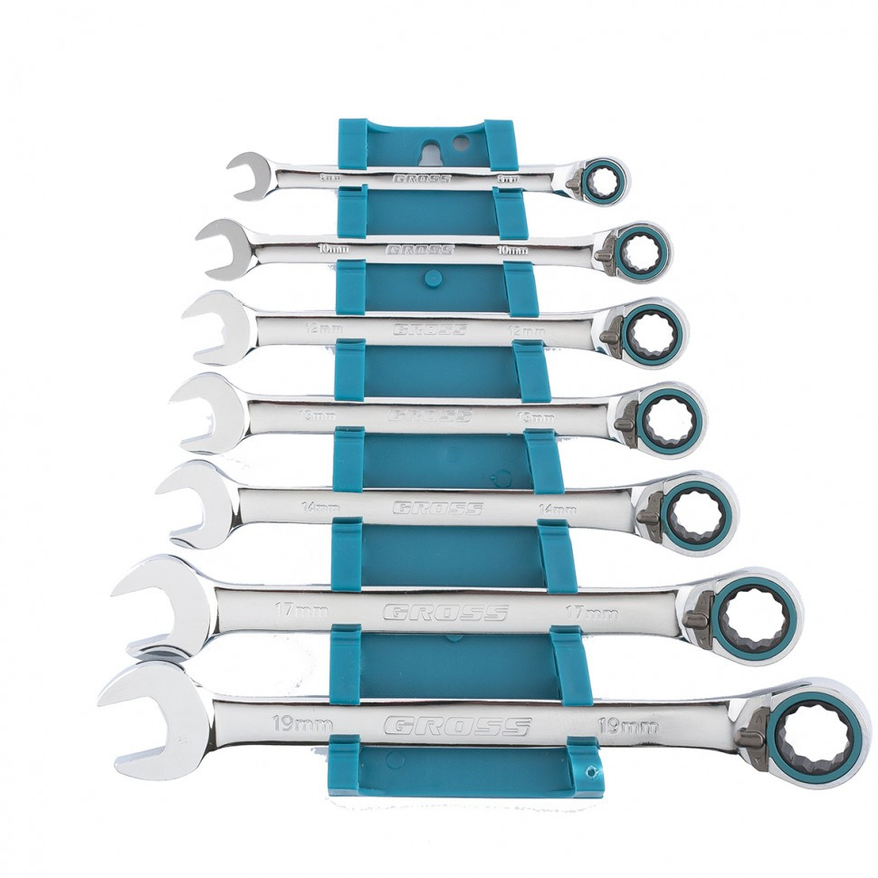Набор ключей комбинированных 8-19 мм 7 шт с трещоткой реверсивные GRОSS
