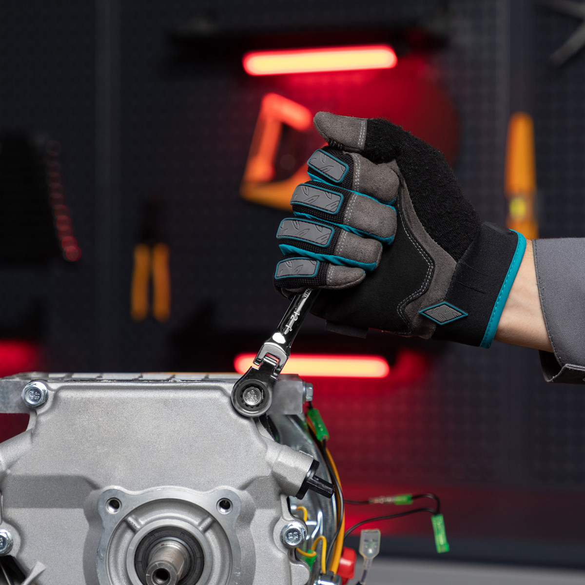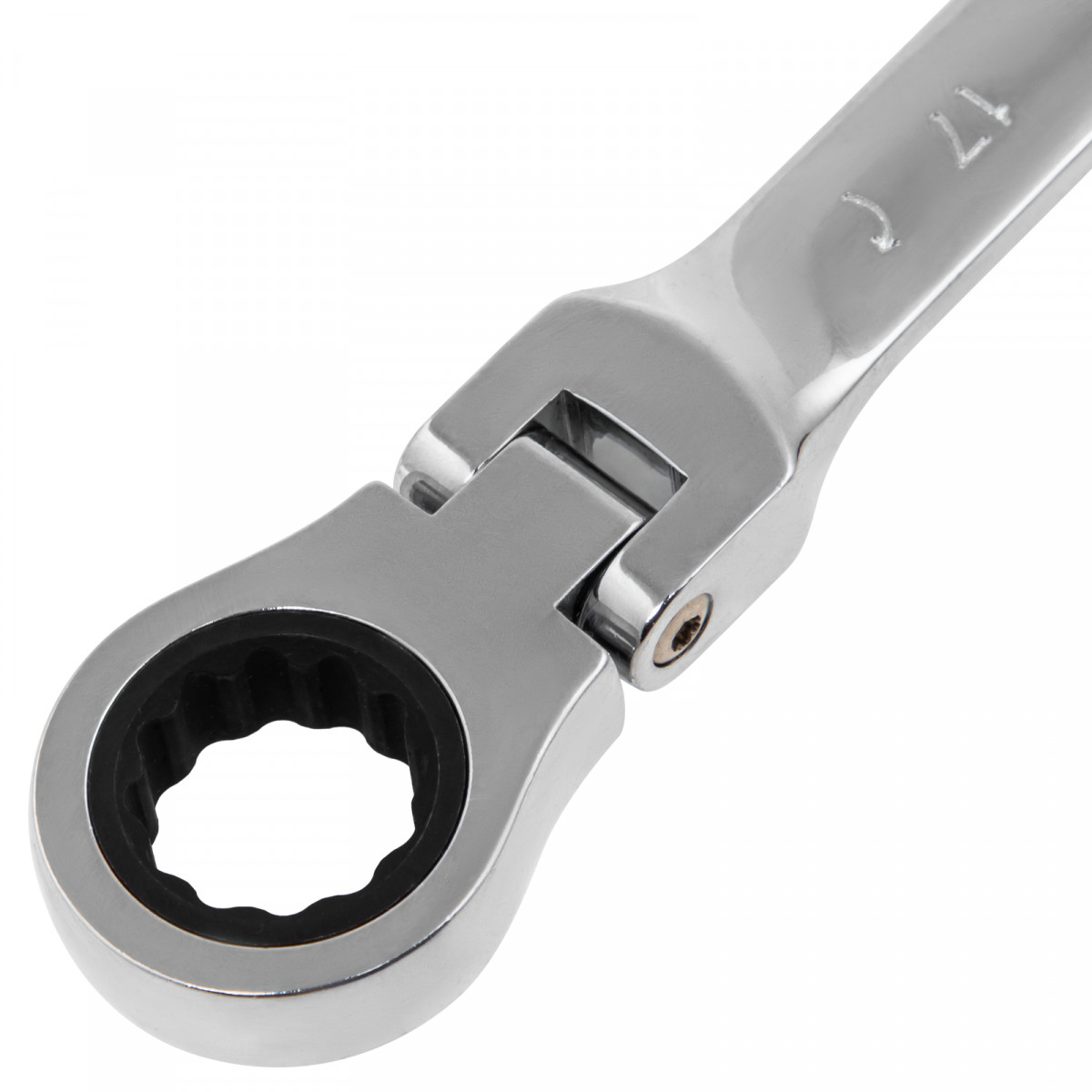 • Удобная работа в труднодоступных местах — храповой механизм на 72 зуба обеспечивает плавное вращение (шаг трещотки составляет 5°), а шарнир позволяет поворачивать рабочую часть под углом.