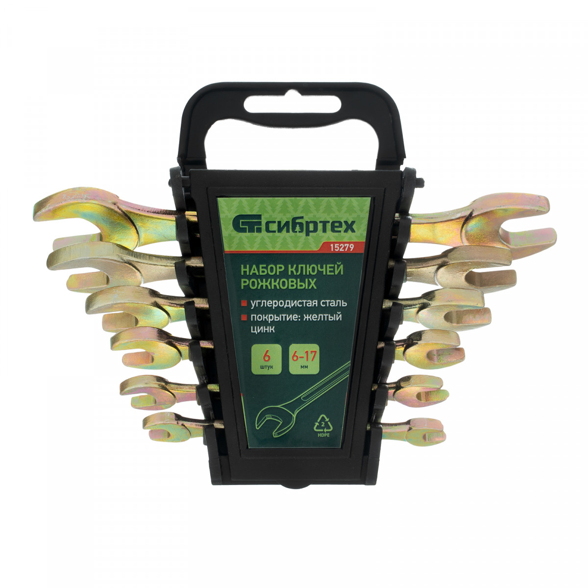 Набор ключей рожковых 6-17 мм, 6 шт, желтый цинк Сибртех