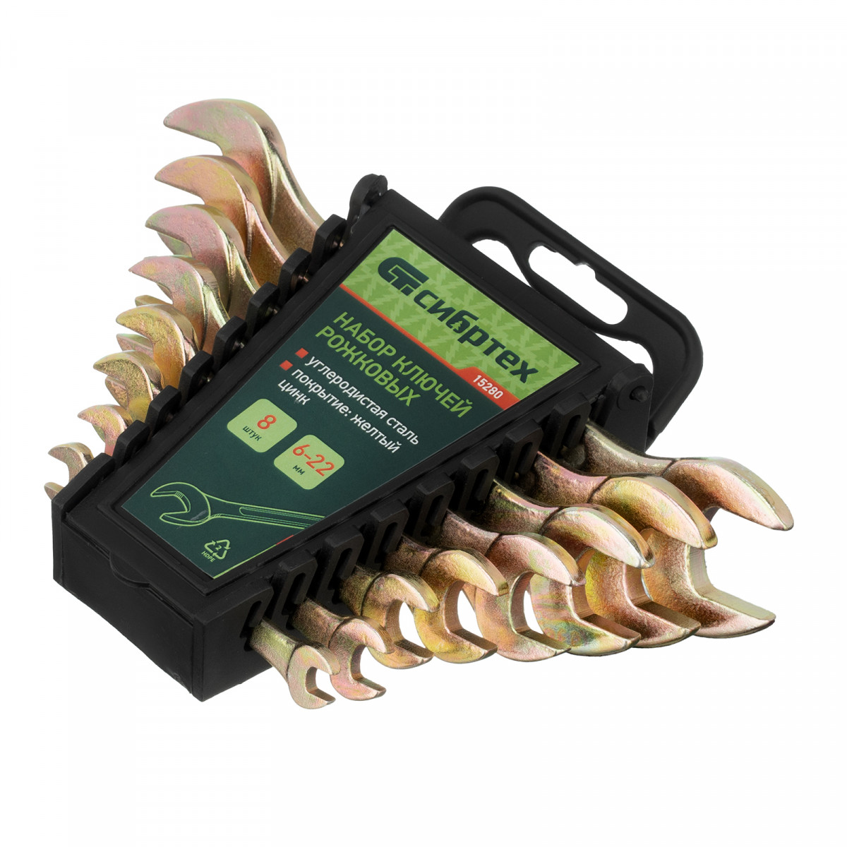 Набор ключей рожковых 6-22 мм, 8 шт, желтый цинк Сибртех
