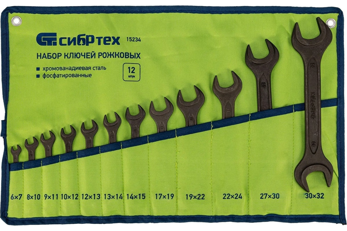 Набор фосфатированных рожковых ключей, изготовленный из стали CrV в соответствии с ГОСТом 2839, состоит из 12 инструментов и используется для монтажа и демонтажа шестигранного резьбового крепежа диаметром 6-32 мм. Ключи являются двусторонними — на каждом конце есть губки с различным размером зева. Набор будет полезен в сервисном центре, авторемонтной мастерской, пригодится также дома и на даче.Прочность и устойчивость к механическим нагрузкам — ключи изготовлены из стали CrV методом горячей ковки, прошли отжиг, закалку и последующий отпуск.