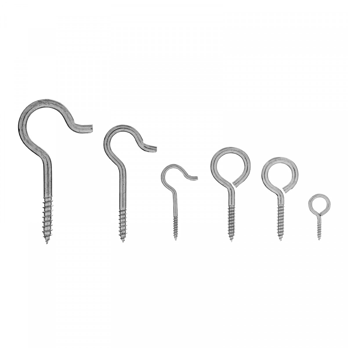 Набор крюков-саморезов Сибртех 47611 состоит из 151 предмета и включает саморезы с диаметром от 2,5 до 6 мм и длиной от 25 до 75 мм. В комплект входят крепежные изделия с головкой в форме кольца и крюка, использующиеся для монтажа подвесных конструкций. Широкий размерный ряд саморезов увеличивает возможности применения набора.