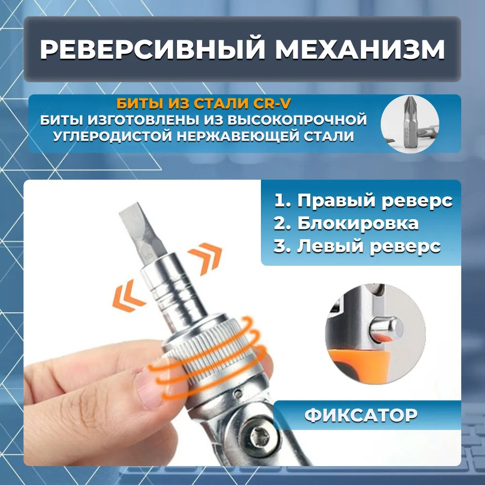 - Отвертка реверсивная универсальная - 1шт