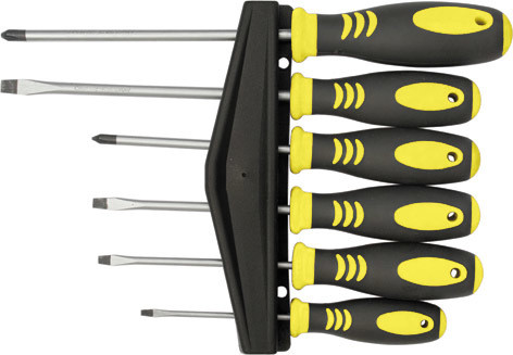 Набор отверток FIT 56027 состоит из 6 отверток с различной длиной рабочей части. Он применяется для закручивания и выкручивания болтов и саморезов. Стержни выполнены из хром-ванадиевой стали , поэтому являются прочными. Набор удобно хранить в держателе. Рукоятки эргономичной формы не скользят в руке. У изделий есть отверстия для подвешивания.
