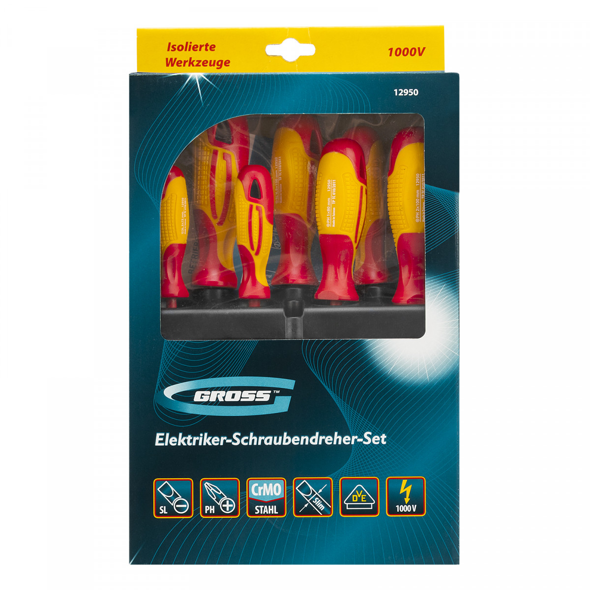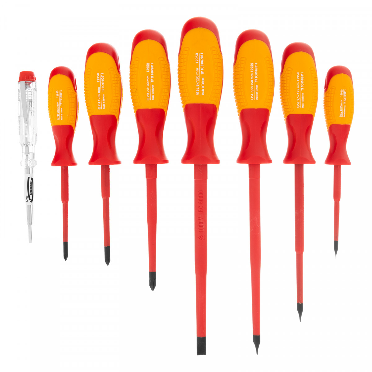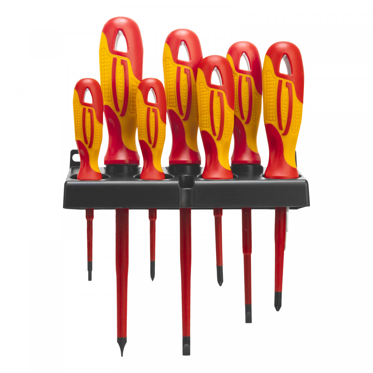 Набор отверток диэлектрических до 1000 В, 8 шт, тестер, CrMo, двухкомпонентные рукоятки Gross