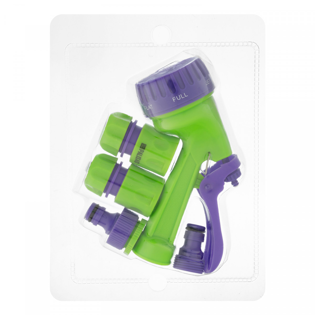 - Прочность и долговечность — шланг изготовлен из высококачественного ПВХ, устойчивого к ультрафиолету, дополнительные элементы набора выполнены из ABS-пластика и не боятся коррозии.