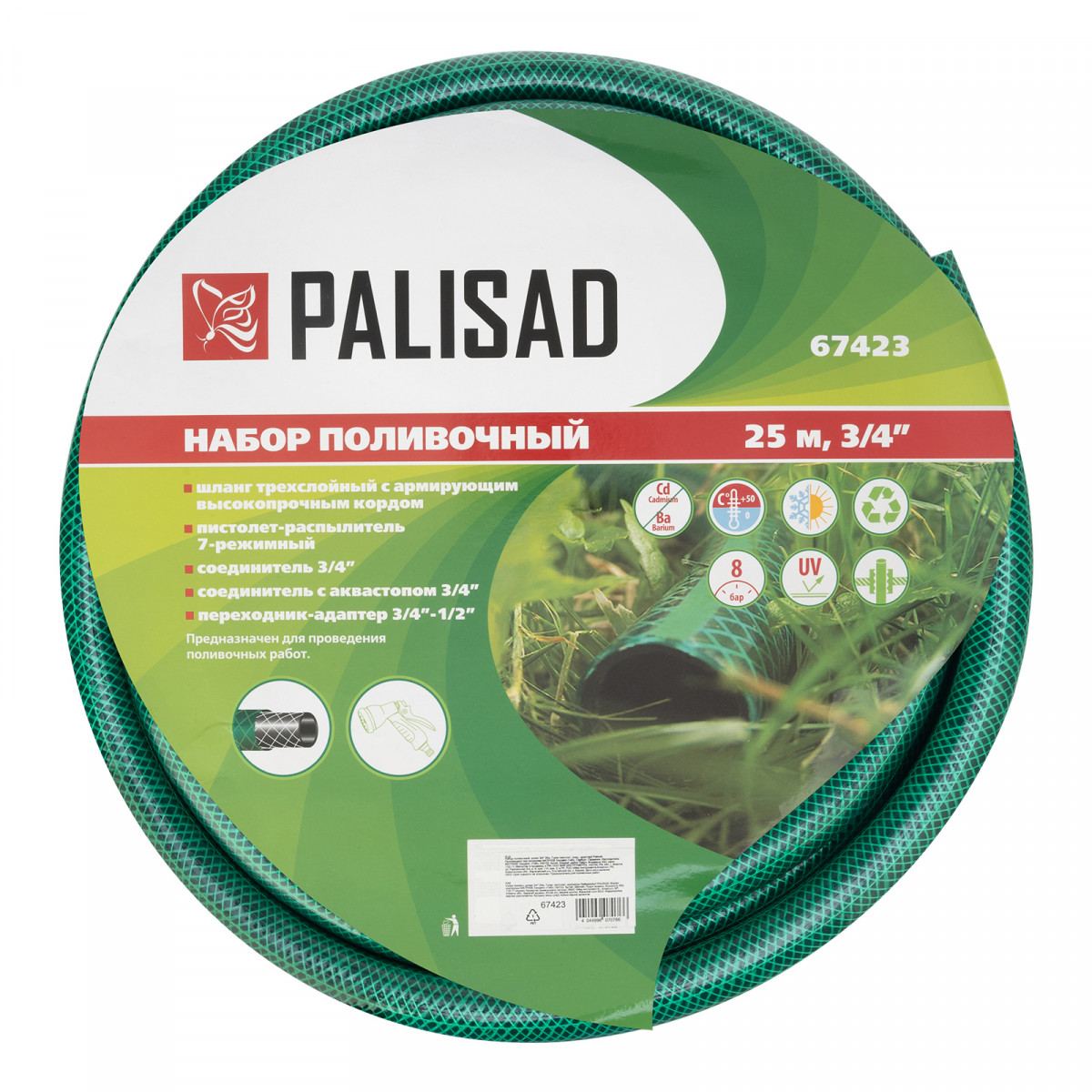Набор поливочный, шланг 3/4", 25 м, 7 режимов пистолет, соединитель, адаптер Palisad