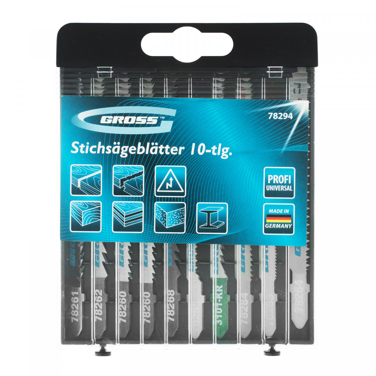 Универсальный набор полотен для электролобзика Gross Profi 78294, 10 шт. в пластиковом кейсе, предназначен для чистого и быстрого прямолинейного распила деревянных и металлических материалов. Каждое полотно отличается высоким качеством, поэтому набор прослужит долгое время даже в условиях интенсивной эксплуатации.
