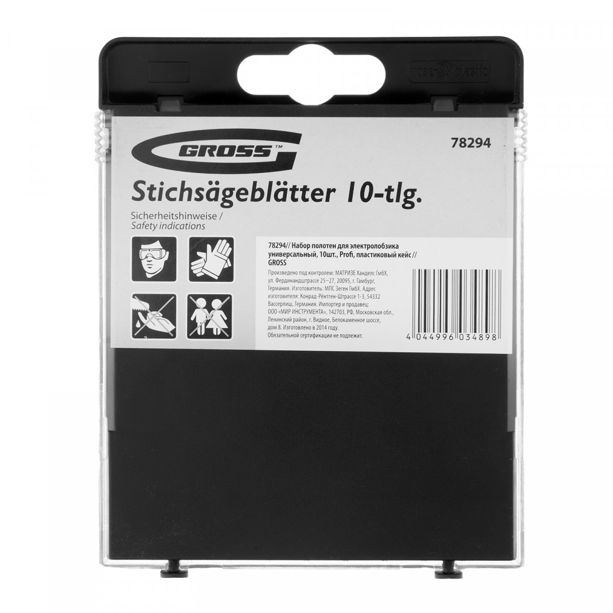 Набор полотен для электролобзика универсальный, 10 шт, Profi, пластиковый кейс Gross