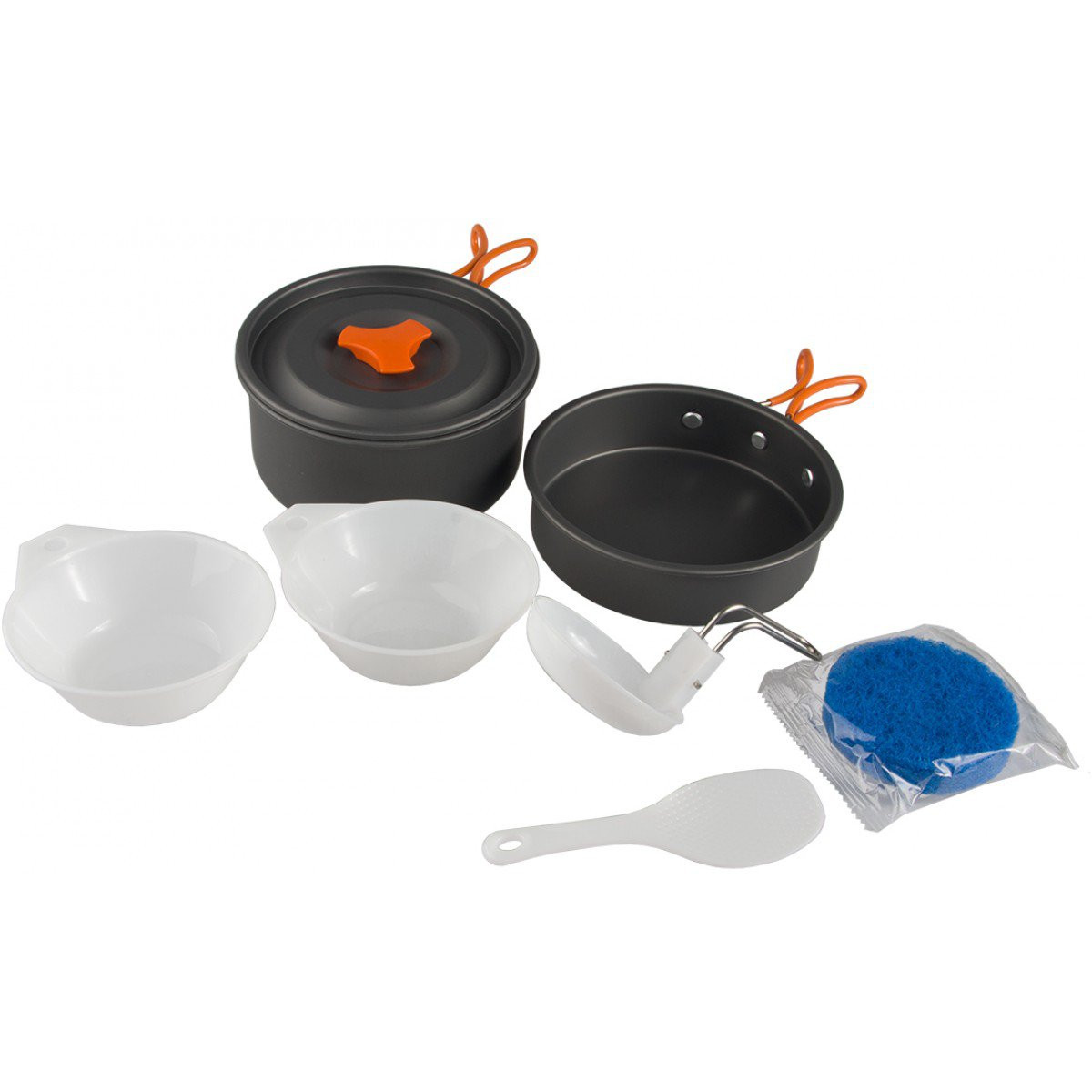 Набор походной посуды «Campsor-420» из анодированного алюминия позволяет соединить в себе приготовление еды и напитков. Набор рассчитан на 2-3 человека.