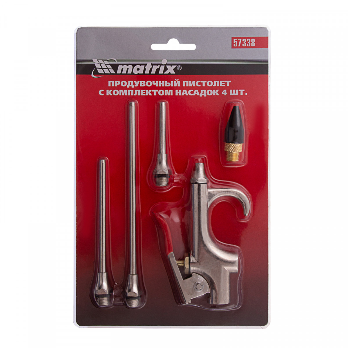 Набор продувочный пистолет, пневмат. в комплекте с насадками, 4 шт Matrix