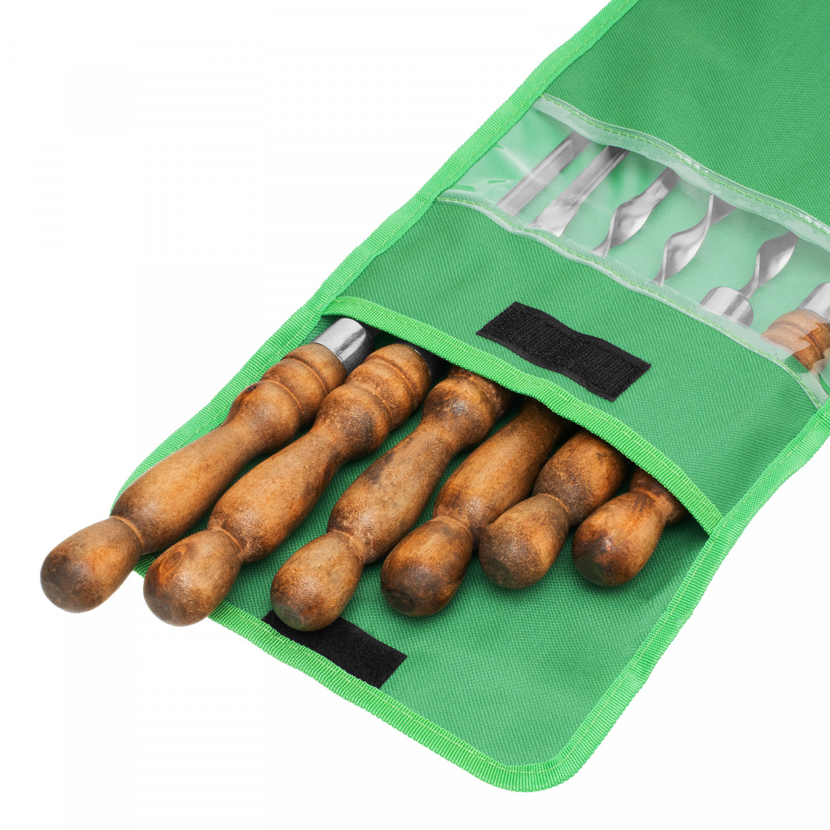 Набор шампуров угловых, 650 мм, с деревянной рукояткой, в чехле, 6 шт., Camping// Palisad