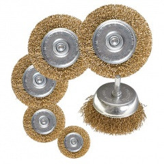 Набор щеток для дрели 40-50-65-75-100мм (5 плоских + 1 "чашка" 50 мм) со шпильками метал. "MATRIX"