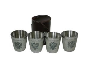 Наборы стопок из нержавеющей стали в кожаном чехле.