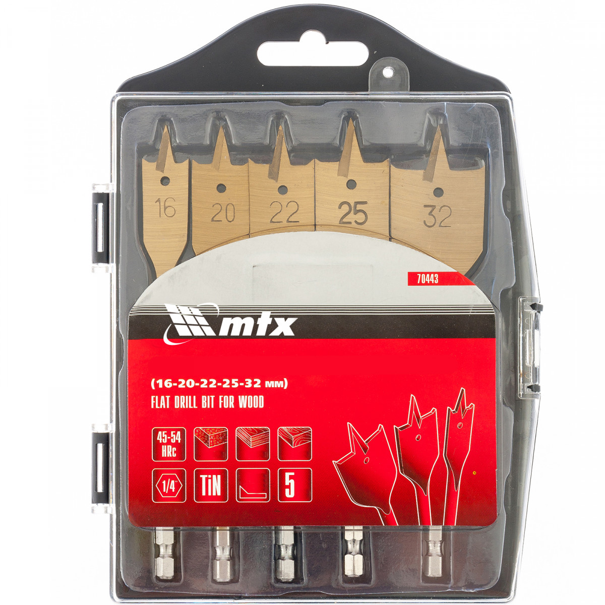 Набор сверл перовых по дереву, 16-20-22-25-32 мм, 5 шт, пластиковый кейс, Matrix