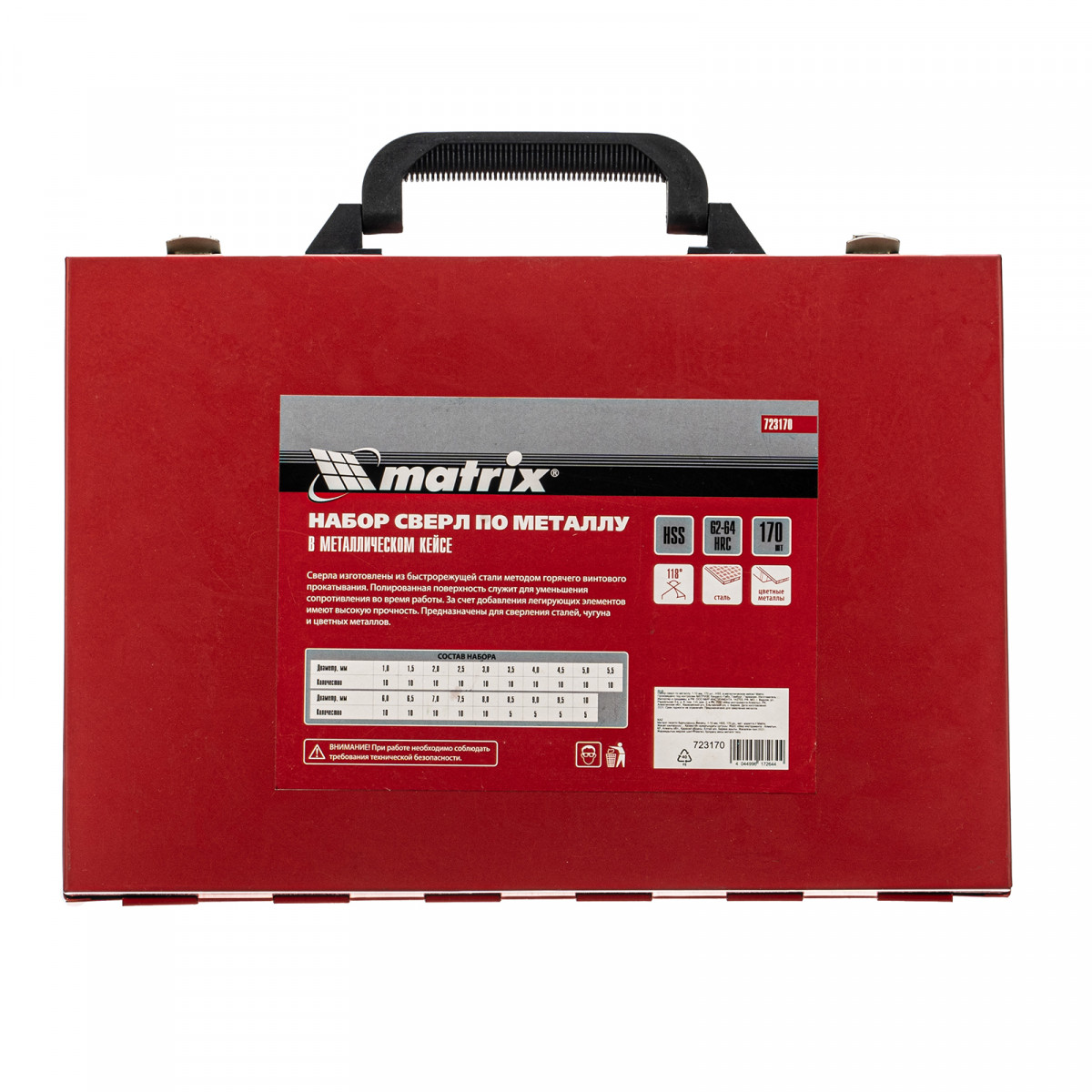 Набор сверл по металлу, 1-10 мм, 170 шт, HSS, в металлическом кейсе Matrix
