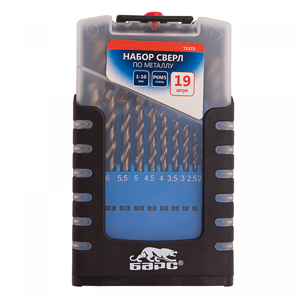 Набор сверл по металлу, 1-10 мм (через 0.5 мм) 19 шт, Р6М5, прокат, цилиндрический хвостовик Барс