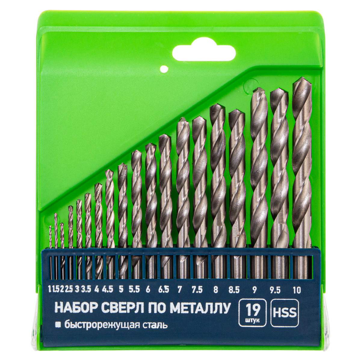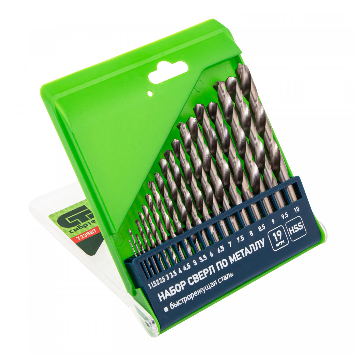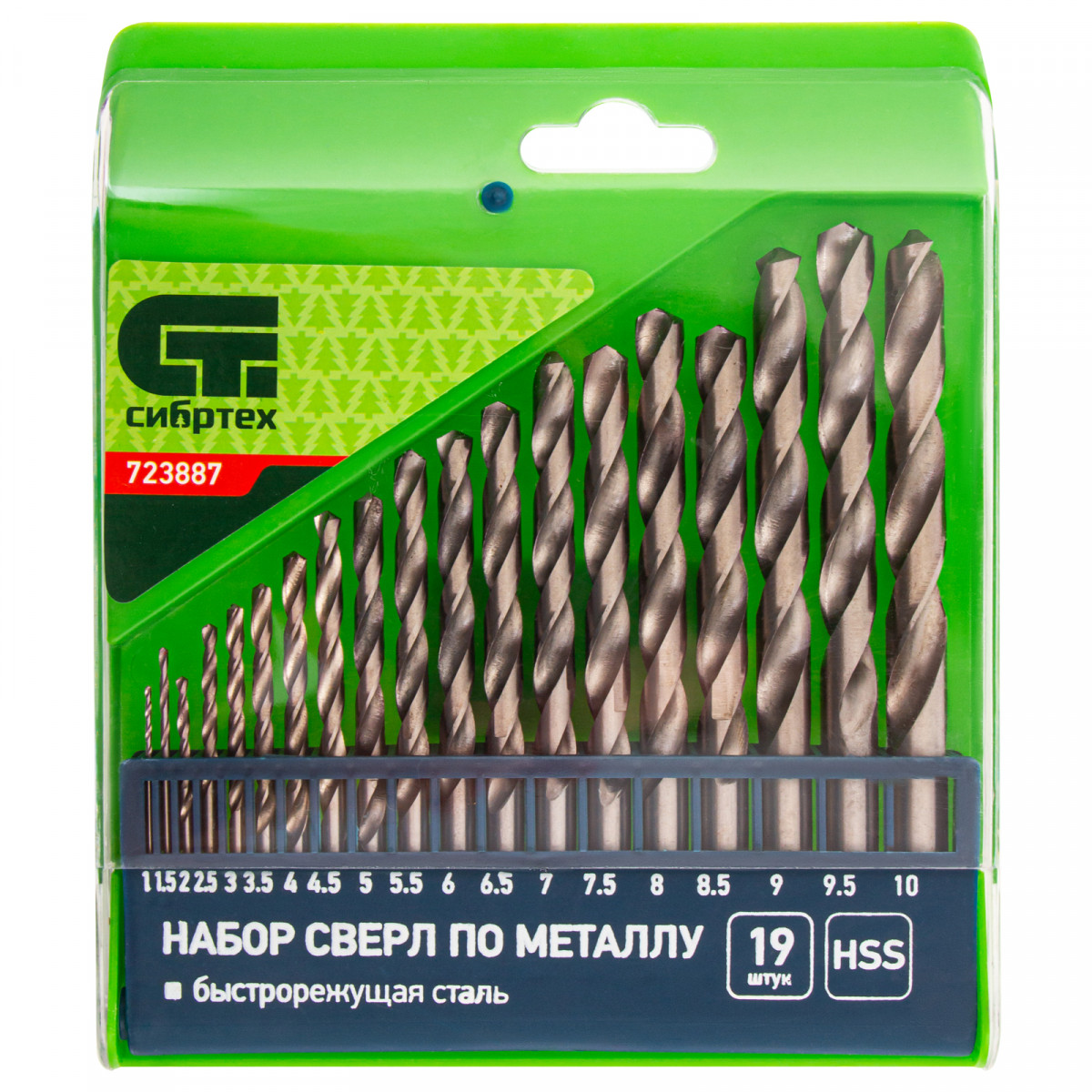 Набор сверл по металлу, 1-10 мм, (через 0.5 мм) HSS 19 шт, пластиковая коробка, цилиндрический хвостовик Сибртех